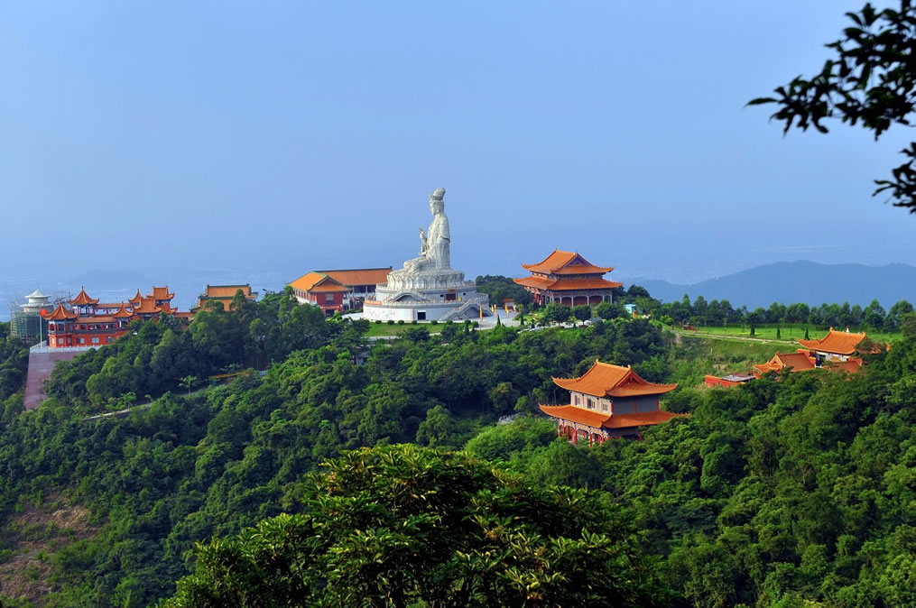 廣東觀音山國家森林公園,位于廣東省東莞市樟木頭鎮(zhèn)筆架山路190號觀音山,地處珠江三角洲東南部,東莞市東部,樟木頭鎮(zhèn)中心邊緣,距鎮(zhèn)中心1.5千米,距離東莞市區(qū)大約40千米,總面積657.18公頃。廣東觀音山國家森林公園最高點為耀佛嶺,海拔566米,觀音山海拔488米。屬丘陵山地地貌。所在地區(qū)樟木頭鎮(zhèn)屬南亞熱帶海洋性季風氣候區(qū)。森林覆蓋率達92%以上,常見植物種類有73科199種。其中屬國家保護的動植物22種,瀕危植物包括粘木、白桂木、蘇鐵蕨、土蠶霜、金茶花、野茶樹和野生龍眼等。有獸類、飛鳥類、甲殼類、昆蟲類等300多種動物。廣東觀音山國家森林公園內(nèi)建成了以正門樓、觀音廣場、觀世音菩薩法像、仙宮嶺、普渡溪、感恩湖、回音壁、怡心亭、慈云閣、先人石壘、古樹博物館、國際會展中心、仙泉游泳館等20余處景點;內(nèi)設6.8千米的吉祥路(佛光路),既可觀景也可休閑健身;還有飛天威亞、龍鳳天梯、冰雪樂園、山地越野車等娛樂項目,是親子家庭放松休閑、寓教于樂的自然課堂。