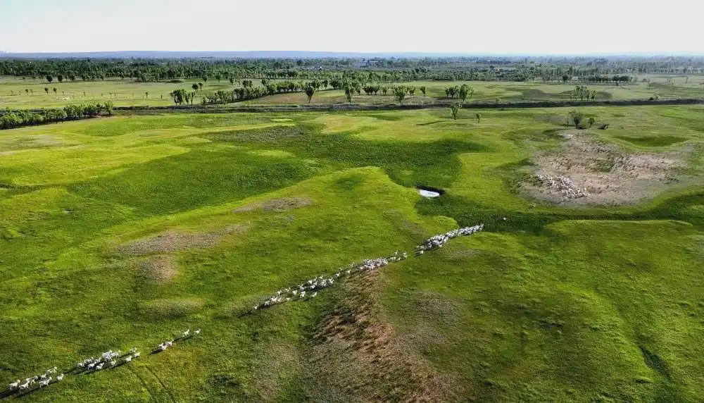 爾林兔草原地處鄂爾多斯高原與毛烏素沙漠過渡地帶,位于紅堿淖風(fēng)景名勝區(qū)東側(cè)。該區(qū)域通過生態(tài)治理實現(xiàn)從風(fēng)沙草灘區(qū)向天然牧場的轉(zhuǎn)變,形成面積達(dá)70平方公里的草原景觀。建有萬畝草原、千畝花海等核心景觀,開發(fā)了騎馬馳騁、草原露營等特色旅游項目。