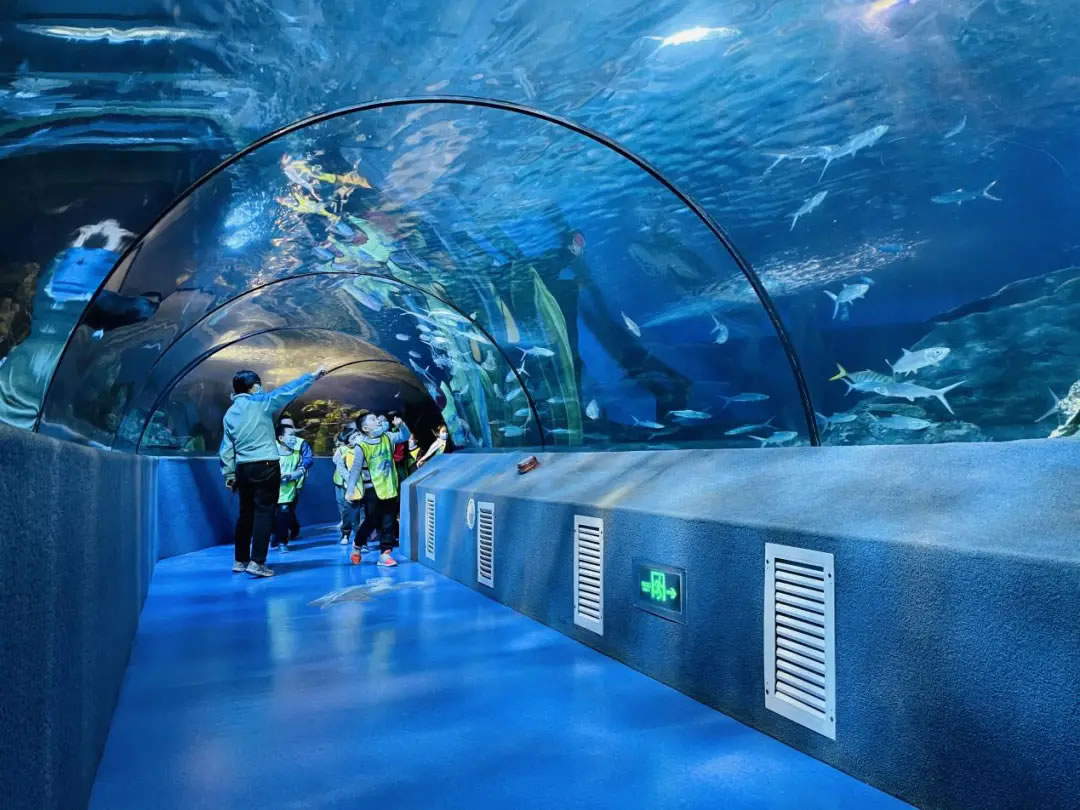 - 家庭親子路線:萌寵區(qū)互動(dòng)(小爪水獺、狐獴)→兒童游樂區(qū)→夜宿海洋館(6-14歲專屬,枕著魚群入眠)。