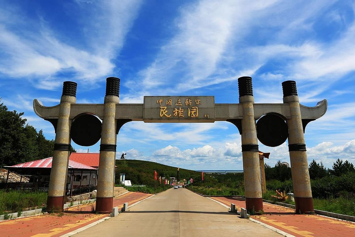 中國(guó)達(dá)斡爾民族園位于內(nèi)蒙古自治區(qū)莫力達(dá)瓦達(dá)斡爾族自治旗尼爾基鎮(zhèn)北9公里,占地218萬(wàn)平方米,2003年開(kāi)工建設(shè),工程總投資1000萬(wàn)元,西鄰111國(guó)道,東接尼爾基水利樞紐工程形成的納文湖。景區(qū)未來(lái)周邊將形成大小不等的半島,規(guī)劃建設(shè)水上娛樂(lè)中心、旅游度假村等服務(wù)設(shè)施,進(jìn)一步提升景區(qū)品質(zhì),2009年獲評(píng)國(guó)家4A級(jí)旅游景區(qū)。園內(nèi)包含獵鷹廣場(chǎng)、無(wú)名英雄紀(jì)念碑、布特哈八旗敖包、薩滿文化博物館、雅克薩城復(fù)原遺址等景點(diǎn),其中薩滿文化博物館被上海大世界吉尼斯總部評(píng)為“保留薩滿文化儀式最多的地方”。該園按“五座廣場(chǎng)一座城一配套”規(guī)劃推進(jìn)標(biāo)準(zhǔn)化建設(shè),二期項(xiàng)目于2019年完工。景區(qū)定期舉辦斡包節(jié)、冰釣節(jié)、曲棍球賽事及非遺展演活動(dòng),設(shè)有國(guó)家曲棍球夏訓(xùn)基地,曾承辦國(guó)際曲棍球邀請(qǐng)賽等賽事。2025年通過(guò)非遺展演、民俗體驗(yàn)等活動(dòng)開(kāi)園迎客,全年接待游客149.34萬(wàn)人次,夜間經(jīng)濟(jì)通過(guò)燈光秀、美食區(qū)等業(yè)態(tài)成為當(dāng)?shù)叵M(fèi)增長(zhǎng)點(diǎn)。
