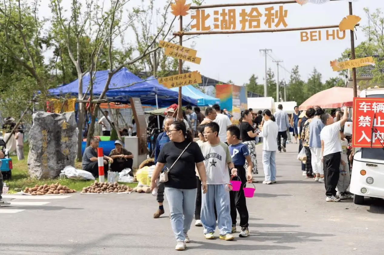 走進(jìn)利民村“北湖拾秋”活動現(xiàn)場,田園間的鮮活氣息撲面而來。39.9元游玩套票搭配手繪版《北湖漫游手冊》,成為游客開啟體驗的“出行標(biāo)配”。手冊不僅標(biāo)注點位,更暗藏“集章抽獎”趣味,而“蛋蛋王國”尋彩蛋、“吃雞獵場”抓活雞、“捕魚達(dá)人”撈小魚等互動項目,讓親子家庭在追逐嬉鬧中沉浸式解鎖農(nóng)耕野趣;手作稻草人守護(hù)松茸田、非遺魚燈點亮秋日祈愿等“秋作”體驗,則讓游客在指尖創(chuàng)作中觸摸鄉(xiāng)村文化肌理。尤其是9.9元的“一米菜田”認(rèn)領(lǐng)計劃,既圓了城市人“躬耕田園”的向往,更通過“認(rèn)養(yǎng)+托管”模式為村集體帶來長期穩(wěn)定收益,實現(xiàn)“游客得樂趣、集體增收入”的雙贏。