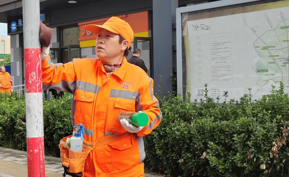 在槐蔭區(qū),環(huán)衛(wèi)工人馬增霞隨身攜帶“八寶袋”,對齊州路沿線的垃圾桶、路燈桿、公交站牌等進(jìn)行清掃。“這個(gè)‘八寶袋’里有軟毛刷、硬毛刷、除膠劑、手套、噴壺等8種工具。”馬增霞介紹,“八寶袋”輕便易攜且取用便捷,可實(shí)現(xiàn)“一包在手,百污可除”,有效提升了主次干道人行道、交通出入口等重點(diǎn)區(qū)域的動(dòng)態(tài)巡查處置效率;夾層內(nèi)的清涼油、創(chuàng)可貼、速效救心丸,既為保潔人員提供安全防護(hù),也能滿足市民應(yīng)急需求。