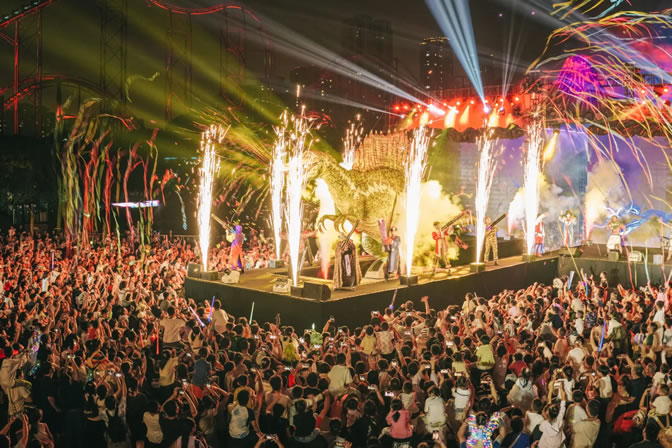 不僅有奇幻新世界,更有奇趣新體驗。劇場里,《復活恐龍D計劃》魔法秀展現(xiàn)恐龍主題趣味魔法,《魯樂回家》音樂劇傳遞人與自然之間的溫暖,《恐龍島危機》特技表演詮釋冒險旅途的驚險刺激;項目前,“百龍軍團”“角角見面會”“邂逅侏羅紀”等仿真恐龍的快閃互動實現(xiàn)了游客“與龍同行”的震撼奇觀;巡游中,“怪獸天團”“逗趣南瓜團”“鬼馬精靈”花車巡游從日落到夜幕,一路載歌載舞,在全新“奇幻D秀”結合電音派對點亮夜空與舞臺,為大小游客留下難忘的假日歡樂。