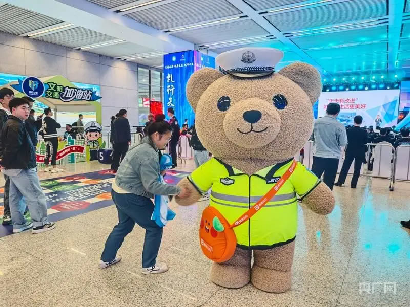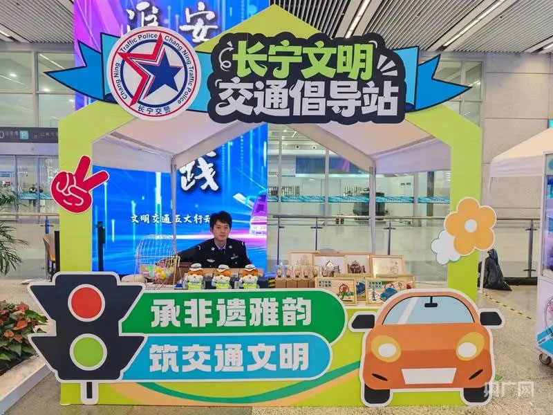 啟動儀式后,現(xiàn)場設(shè)置的多個互動體驗區(qū)吸引了大量市民駐足參與。文明交通游戲互動區(qū)融合了快樂大轉(zhuǎn)盤、抓娃娃機(jī)、交通標(biāo)識猜謎等趣味項目;交通科技體驗區(qū)則展示了包括高科技警用設(shè)備、警用無人機(jī)、安全駕駛AR模擬、酒駕測試眼鏡在內(nèi)的先進(jìn)裝備,讓市民直觀感受科技賦能交通管理的成效。文明實踐快閃店集中呈現(xiàn)了虹橋機(jī)場、虹橋火車站等窗口單位在文明實踐中的創(chuàng)新成果。