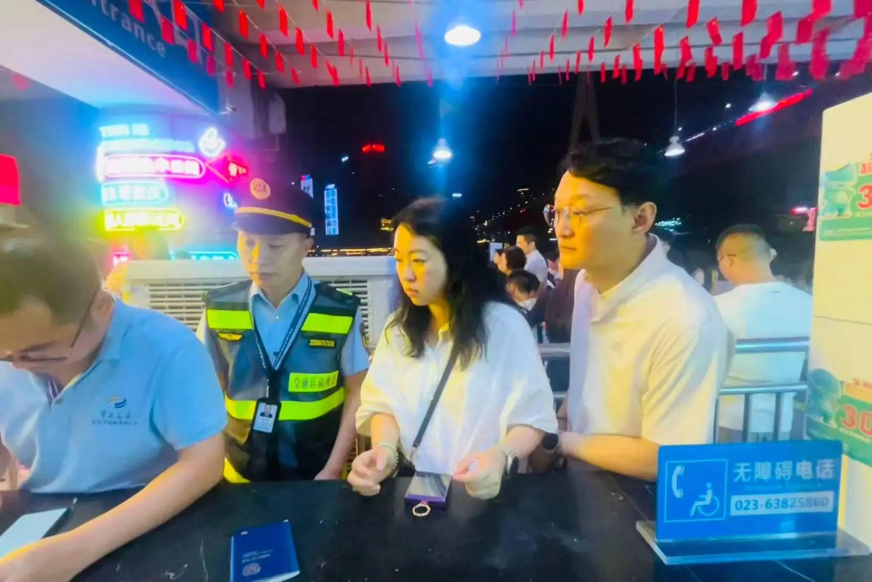 10月5日晚,兩名韓國游客因手機損壞無法出示購票信息,向洪崖洞客運碼頭兩江游執(zhí)法服務站求助。執(zhí)法人員一邊安撫游客,一邊協(xié)調技術人員通過后臺系統(tǒng)查詢,不到5分鐘便幫助游客順利登船。這一高效處置展現(xiàn)了服務站“事企聯(lián)動”機制的優(yōu)勢,也為外國游客留下了美好的重慶印象。